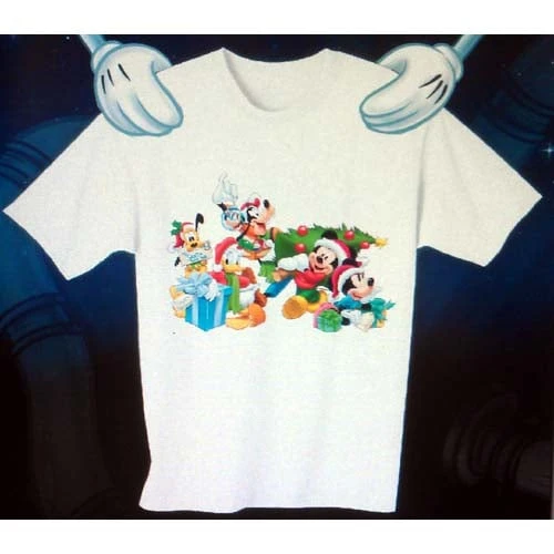 This merry holiday tee shirt features Mickey Mouse, Minnie Mouse, Donald Duck, Goofy, and Pluto too. The gang is gathering to decorate for Christmas. Originally one of many designs from Design a Tee, this tee is one of the few we have left from that store. Please note – this is a 3XL Navy shirt. Design a Tee is no more so we cannot personalize this or make any others like it.