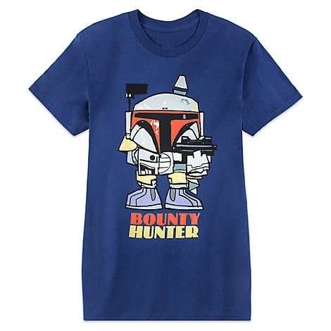 The galaxy’s most notorious bounty hunter suddenly finds himself the wanted subject as a result of being featured on this tee. Boba Fett has been reimagined in a comical way on the front of this fun Star Wars top.