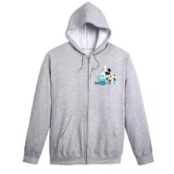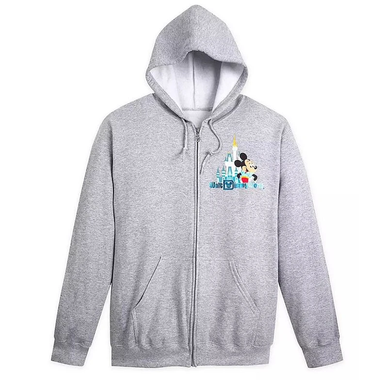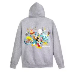Find yourself in good company (and toasty warm) in this hooded zip-up sweatshirt featuring screen art of Mickey, Minnie, Pluto, Goofy, Donald, and Dumbo plus favorite Walt Disney World landmarks on the back. Pouch pockets, drawstring hood and soft fleecy interior make this the perfect jacket for a visit to The Most Magical Place on Earth.