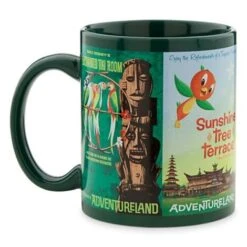 - Poster art includes Walt Disney’s Enchanted Tiki Room, Sunshine Tree Terrace (featuring the Orange Bird), Jungle River Cruise, and Swiss Family Treehouse