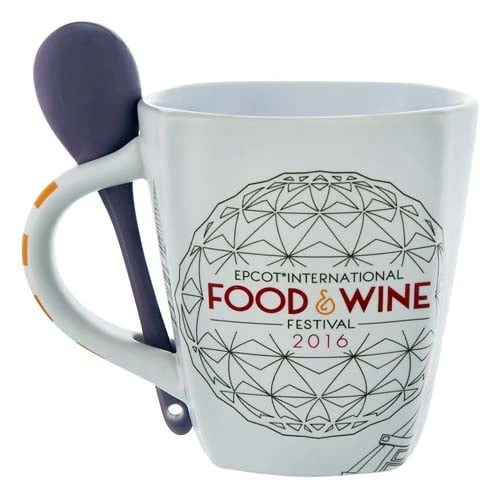 Awaken to the fine aroma of world class custom brews every morning while sipping from this souvenir coffee mug direct from the 2016 Epcot International Food & Wine Festival. Featuring an adorable Chef Figment design, it also has matching spoon and will be available for a limited time only.