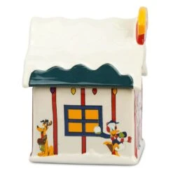Welcome to Chip ‘n Dale’s! This little red holiday house is open for business and ready to hold your favorite cookies. Mickey and the gang appear among the snowy sides and festive decorations that make this cookie jar the centerpiece of your seasonal kitchen décor.