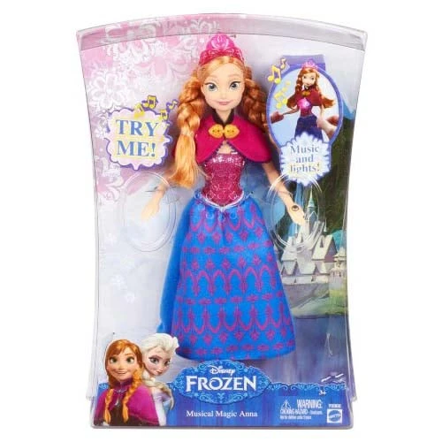 Recreate favorite scenes from the movie with an Anna doll dressed in beautiful fashions, including a glittery gown, pink cape, and matching tiara! Plus, this charming doll lights up and plays music inspired by the film!
