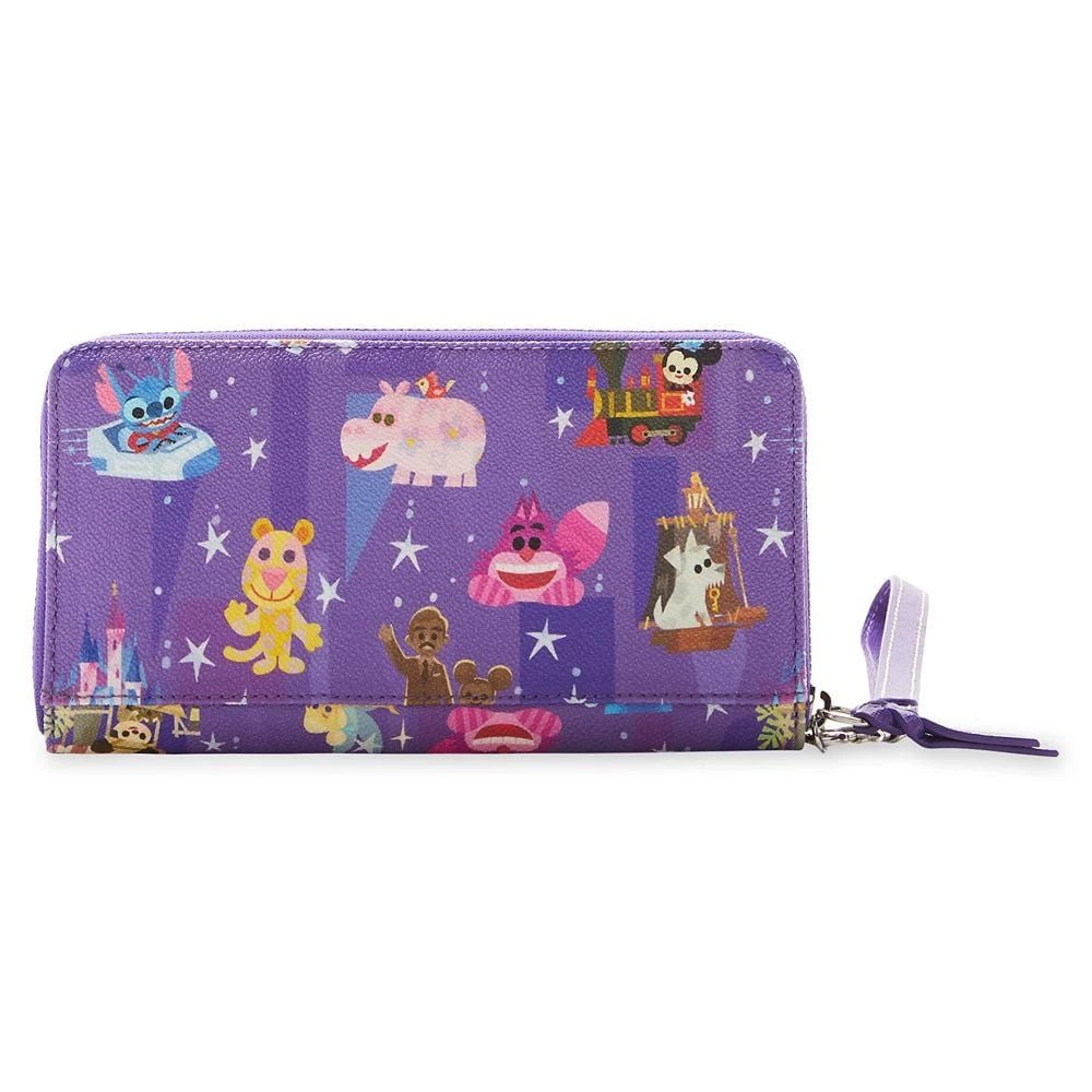 Covered in colorful designs inspired by favorite characters, Disney Parks landmarks, attractions and more, this wallet by Dooney & Bourke features the distinctive art style of Joey Chou. The coated cotton purse has leather trim, compartments to keep your cash and cards organized and includes a detachable leather wrist strap for hands free convenience.
