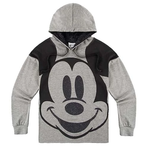This gray knit Mickey Mouse pullover with glitter accents brings a touch of class to casual clothing. Leave a sparkling impression when you’re running errands or about the town with Mickey’s Fa-Mouse face.