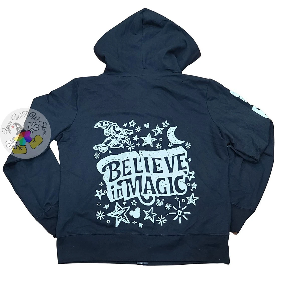 - Flocked Mickey as The Sorcerer’s Apprentice from Walt Disney’s Fantasia, plus ”Believe in magic” logo on front