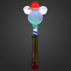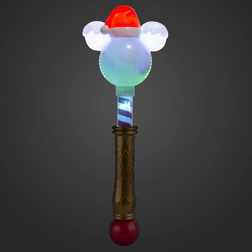 Bring a winter wonderland wherever you go with this swell Mickey Mouse holiday bubble wand. The topper lights up and blows out mini bubbles while the peppermint striped pole turns and has its own light.