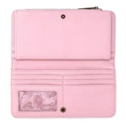 This Disney Loungefly faux leather flap wallet features some of your favorite Disney characters; Meeko, Flora, Fauna, Merryweather, Sebastian, Flounder, Cogsworth, Lumiere, Gus, Jaq, Mushu, and Cri-Kee. This faux leather flap wallet includes printed, interior lining and metal plaque details. It measures approx. 4” X 3.5”.