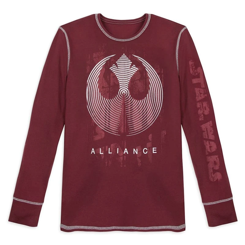 This soft jersey knit long sleeve t-shirt is perfect for Rebel missions. The distressed Star Wars logo screen art adds an extra layer of cool design and accents the Rebel Alliance emblem screen art on the chest.