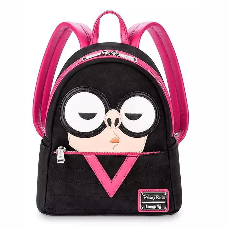 Accessorize your next secret mission with the help of The Incredibles’ famous designer, Edna Mode. The fashion powerhouse adds her estimable appearance to this mini backpack by Loungefly. With pink trims, side pockets and a ”no capes!” lining, this bag is sure to rock any rescue.