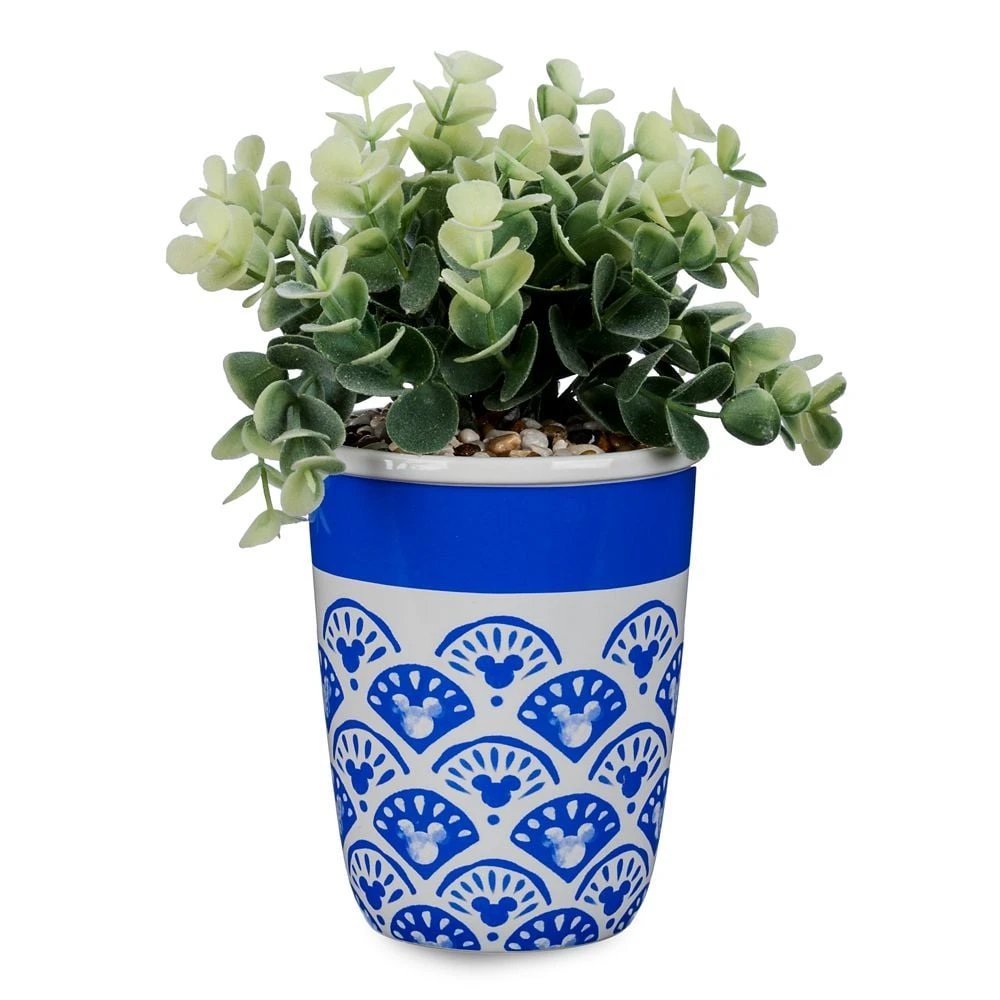 The affection for Mickey will continue to grow when you decorate your home or garden with this ceramic planter. The exterior features a twist on the classic blue and white china designs with a pattern incorporating Mickey icons done in a folk art style.
