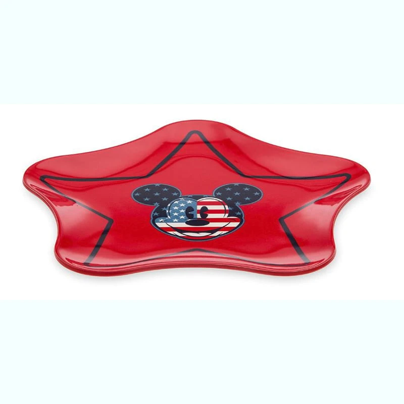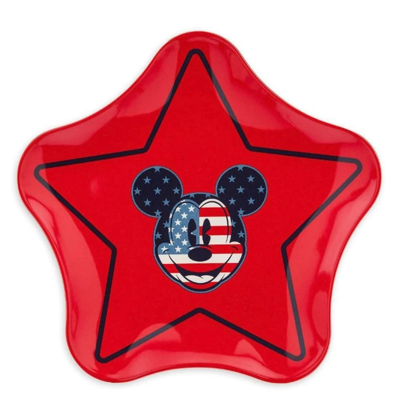 Serve up a star spangled setting with this Mickey Mouse Americana Star Plate. Featuring USA-themed motifs adorning a star-shaped melamine plate, this piece is sure to lend patriotic flair to your tabletop.