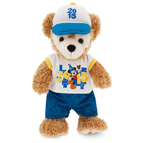 Celebrate the New Year with this 12” Duffy plush in souvenir 2015 outfit. The super soft and cuddly Duffy is wearing coordinating pants, cap, and a raglan tee featuring Sorcerer Mickey, to ensure you’ll have a magical year.