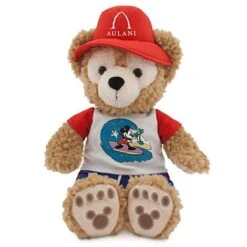 Duffy sails away to paradise in his tropical tourist outfit, complete with a tiny Mickey Mouse tee shirt and bright red sun hat, for this soft and sunny souvenir plush direct from Aulani, A Disney Resort & Spa in Ko Olina, Hawaii!