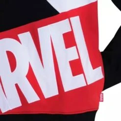With great power, comes responsibility for super style. This premium pullover hoodie with pieced color blocking and embroidered accents spotlights the mighty Marvel logo.