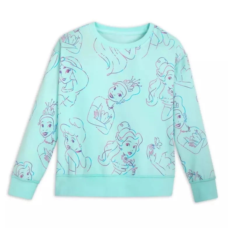 Multicolor Disney Princess graphics grace this pullover sweatshirt that can only be called completely dreamy. Allover sketch artwork of Cinderella, Ariel, Belle, Jasmine, and Tiana make it a top they’ll want to wear happily ever after.