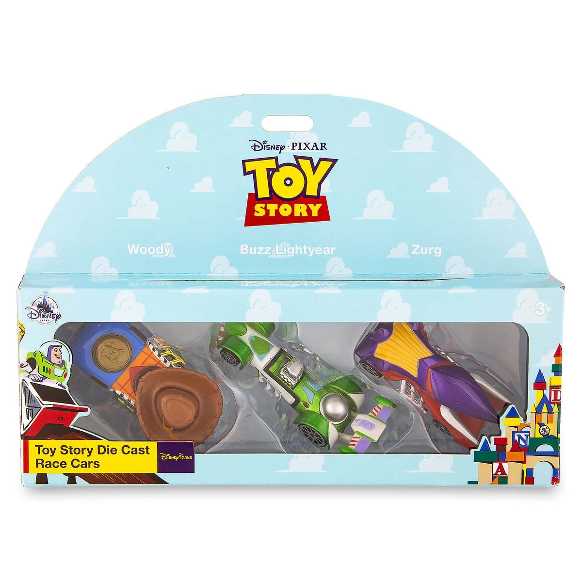 - Set includes three die cast racers: Woody, Buzz Lightyear, and Emperor Zurg
