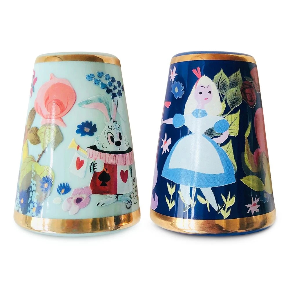 Every day is a Golden Afternoon when spicing-up your dreams with our salt and pepper shakers featuring Alice, White Rabbit, and the Garden of Live Flowers. Designs adapted from inspirational art for Alice in Wonderland by Disney Legend Mary Blair.