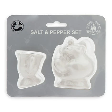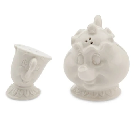 Be a guest and flavor meal times with this charming Mrs. Potts and Chip Salt and Pepper Shaker Set. The two characters from Beauty and the Beast have been finely detailed in white ceramic to spice up your table.