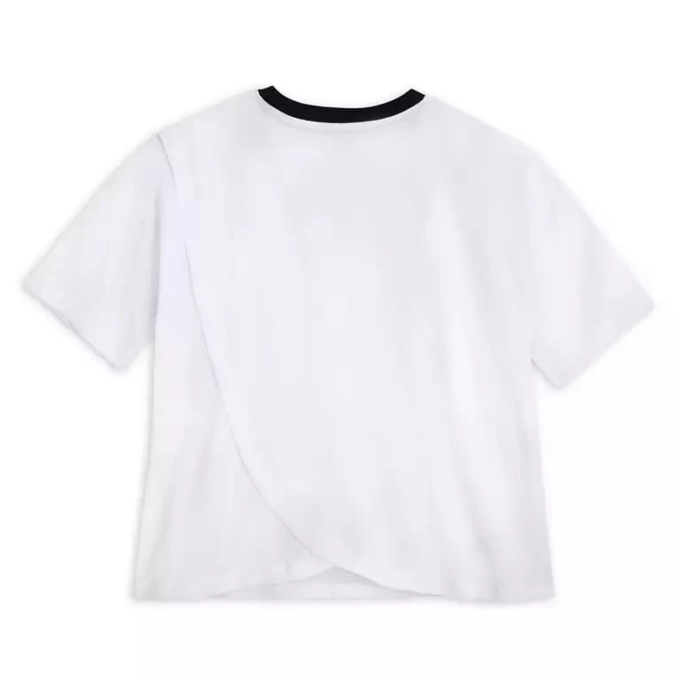 It’s a celebration for the galaxies with this Star Wars fashion top. Full of color and charm, it features the film’s rainbow logo surrounded by stylized icons including a Lightsaber, the Millennium Falcon, an X-wing starfighter and more on the front. The rainbow Starbird insignia is printed on the pretty petal back. Accented with a special neck tape and contrast ribbed collar, this semi-cropped jersey top is so cute it brings out the stars, the moon and rainbows too.