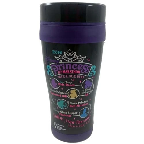 Celebrate completing the Princess Half Marathon with this Official runDisney Princess Half Marathon tumbler with lid featuring the logo for 2016!
