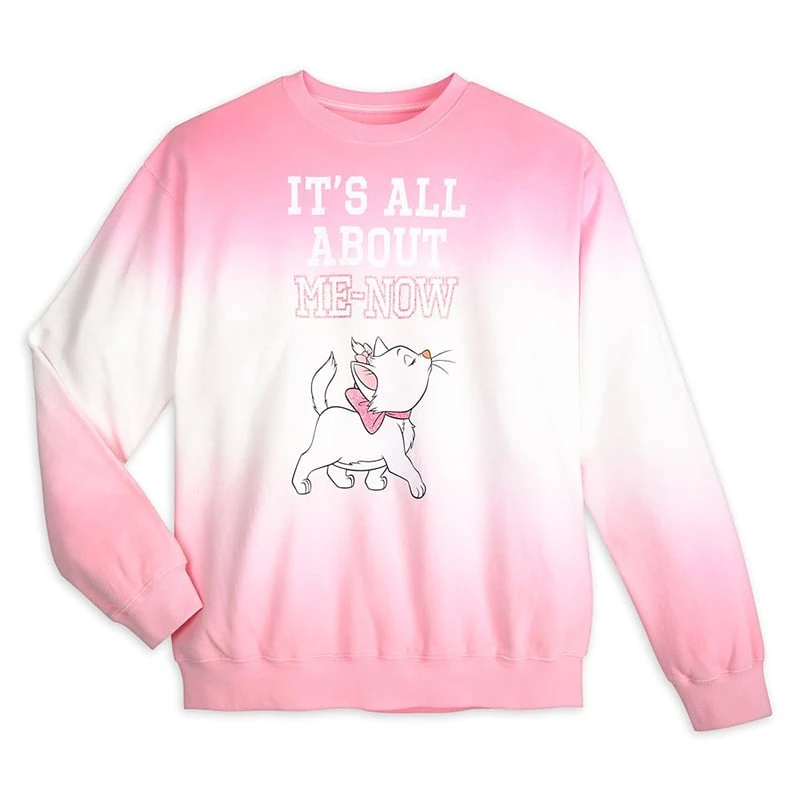 Avoid a fashion cat-astrophe by wearing this ombré pullover top that makes it clear who’s in charge. Marie struts her stuff across the front, which bears the words ”It’s all about me-now” text. Just purr-fect.