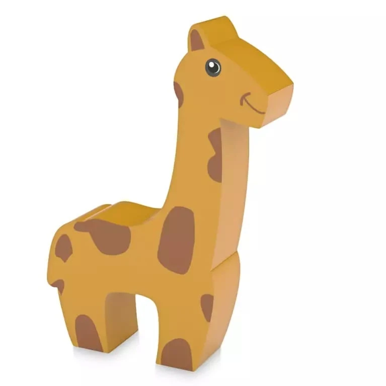 Baby will be right on track to playtime fun with conductor Mickey! This three-car train play set comes with a wooden giraffe, a whistle that doubles as the smokestack, and a Mickey figure with moving arms. All aboard!
