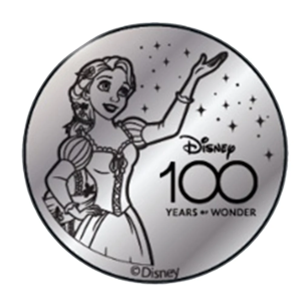 - Says ”Disney 100 Years of Wonder Walt Disney World” on one side and ”Disney 100 Years of Wonder” with the character on the other