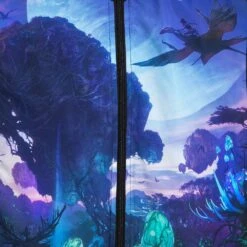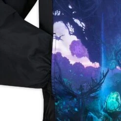 The fantastical landscape of Pandora – The World of Avatar is featured on the front and back of this lightweight hooded jacket. Whether you’re visiting the themed area at Disney’s Animal Kingdom, or out and about in the real world, this water resistant jacket will keep the weather at bay and your imagination inspired.